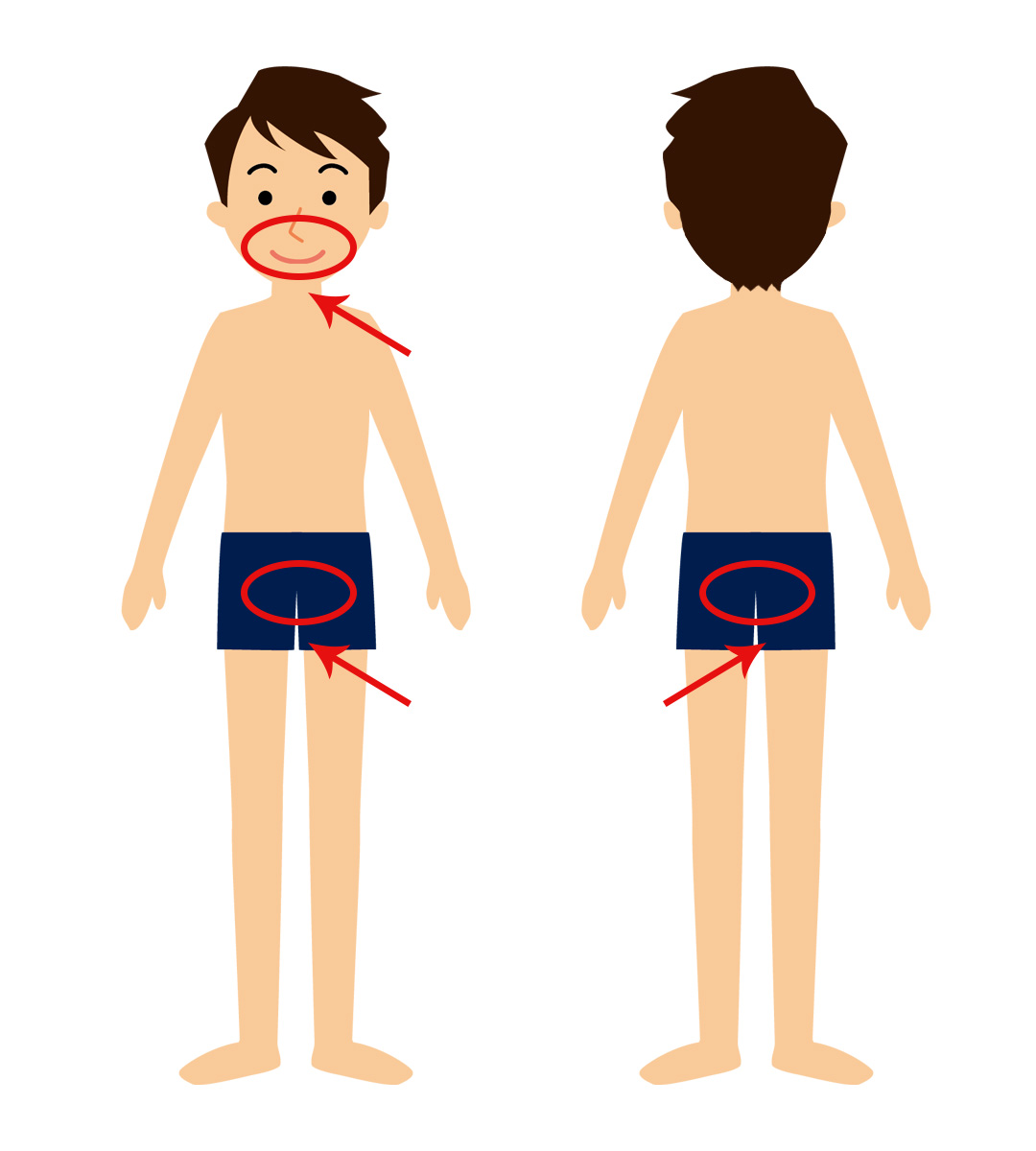 - 病変がないと思われる性器や肛門部等の皮膚や粘膜からの感染もある