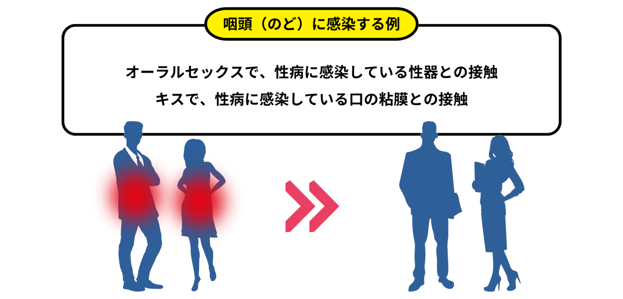 咽頭に性病が感染する経路は、主に2つの理由が考えられます。