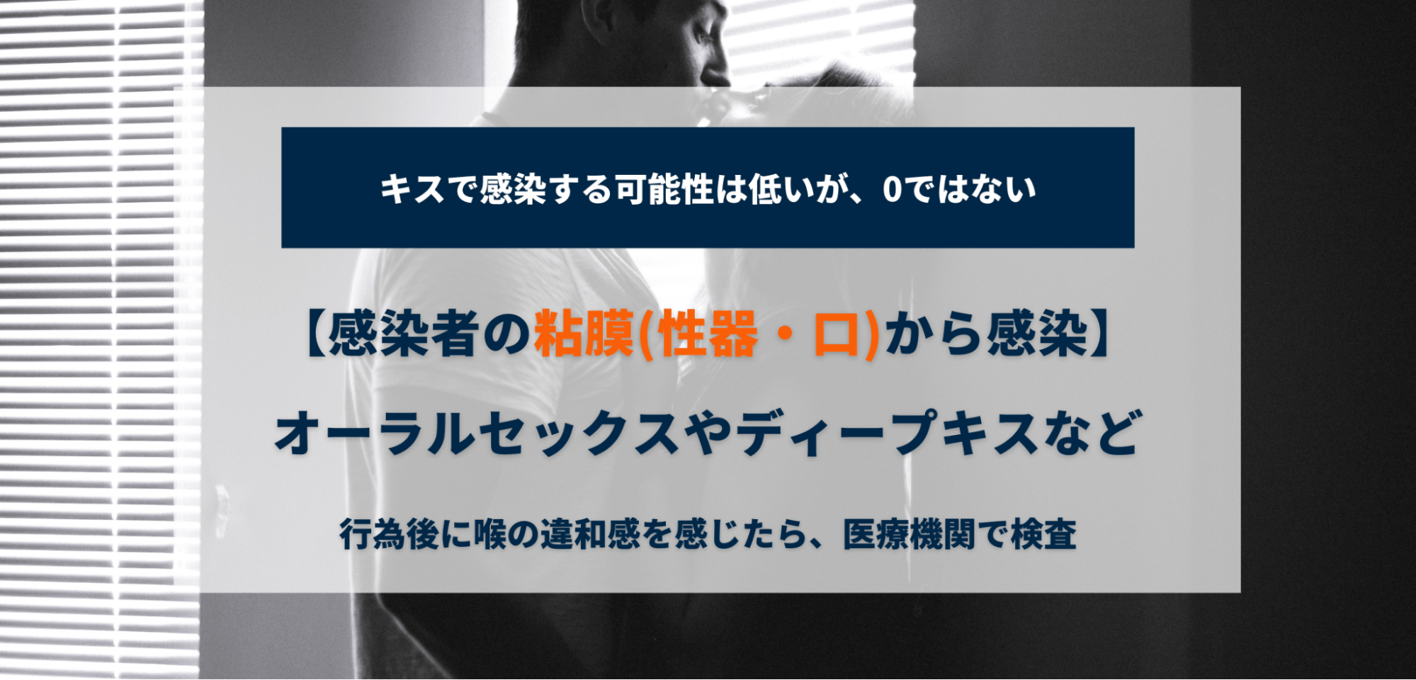 - ・膣性交だけでなくオーラルセックスや場合によってはディープキスでも感染する可能性があるため