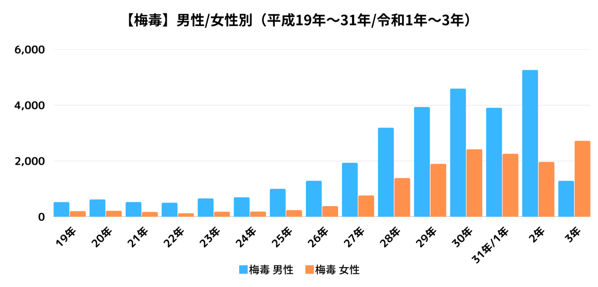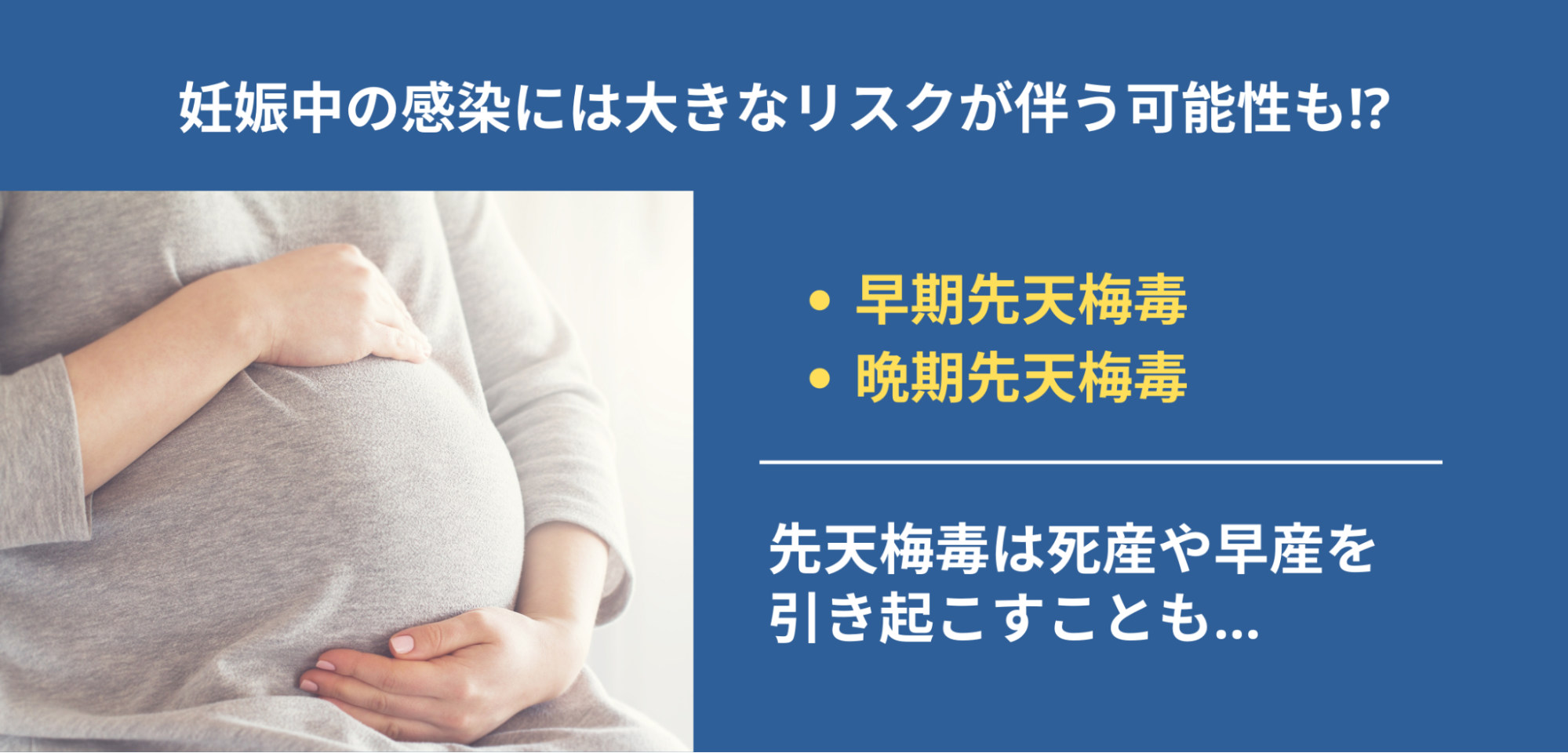 赤ちゃんが母体内で胎盤を通して感染したものを先天梅毒と呼び、流産のリスクを高め、無事出産を迎えても様々な症状や障害を起こす場合があります。それ以外で感染したものを後天梅毒と呼びます。