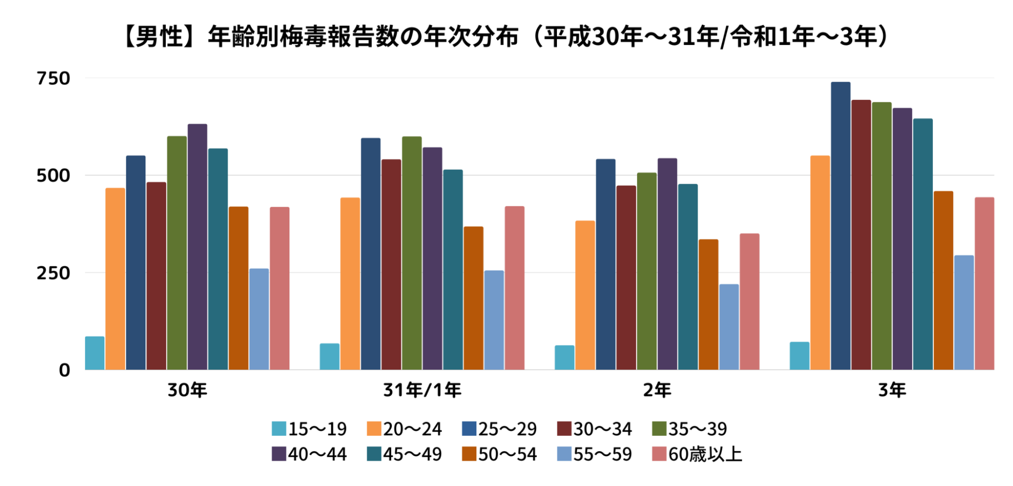 また、昔とは異なり死に至る・治らない病気ではなくなり、4期まで梅毒が進行する症例は少ないです。