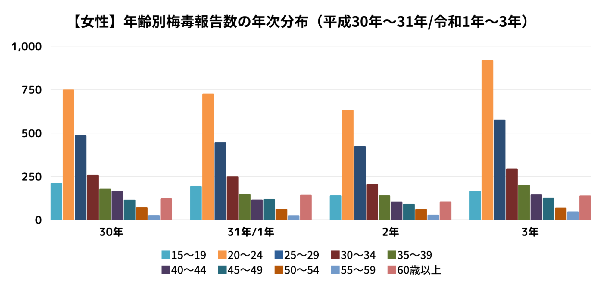 男性は年齢問わず感染が多くなっており、女性は20代の感染が多くなっている状況です。